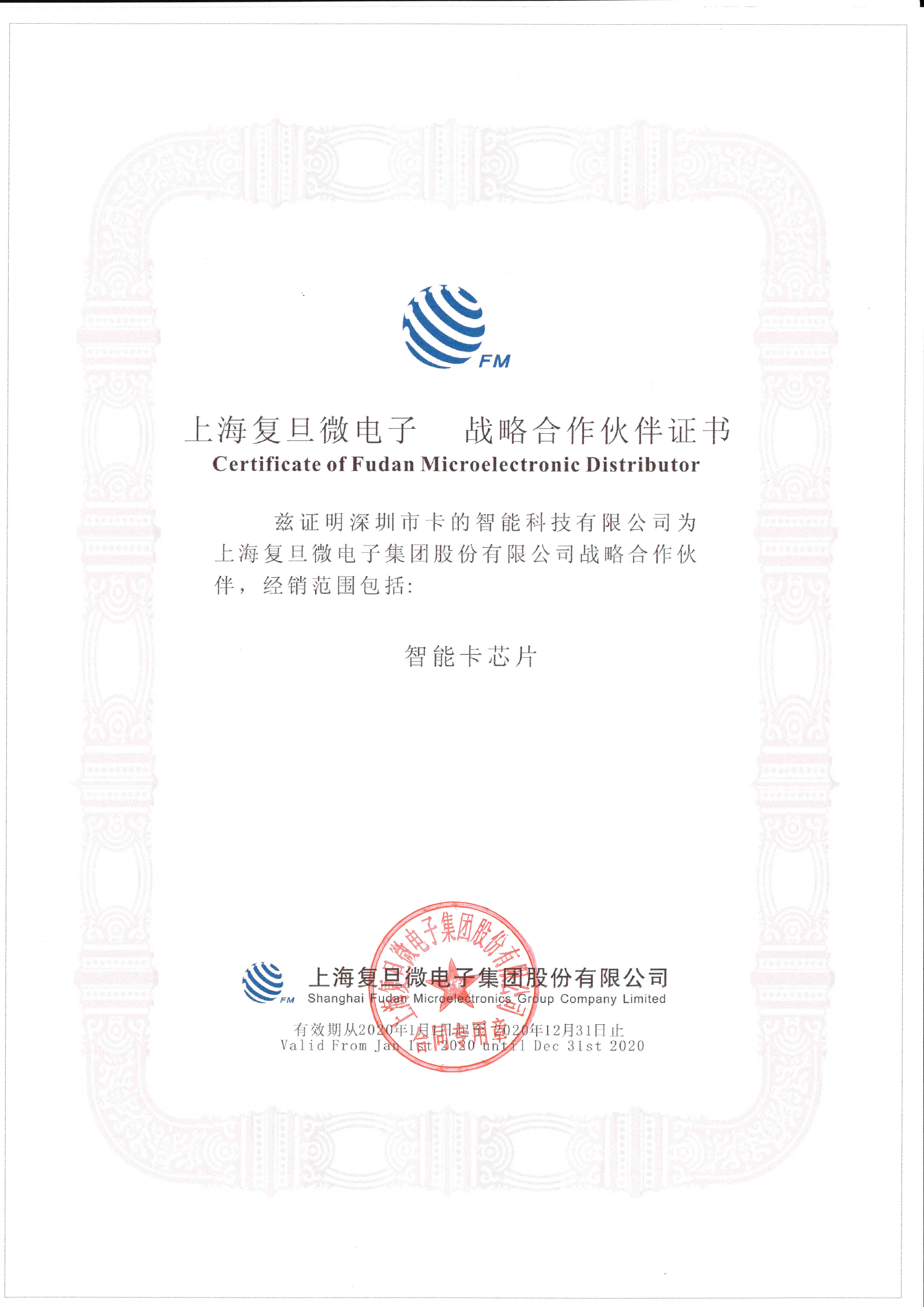 上(shàng)海(hǎi)複旦微(wēi)電(diàn)子(zǐ)戰略合作(zuò)夥伴證書(shū)