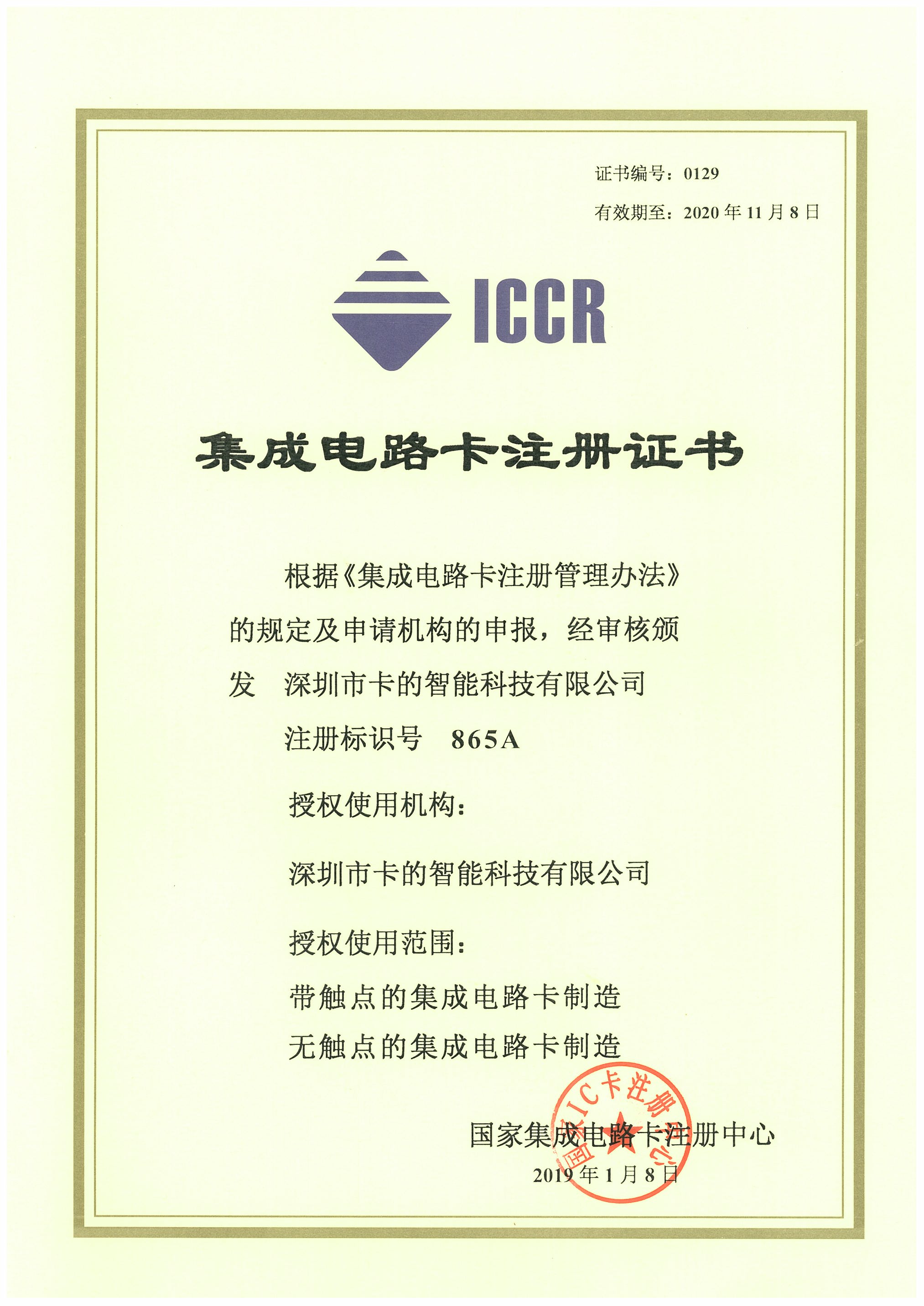 集成電(diàn)路(lù)卡注冊證書(shū)