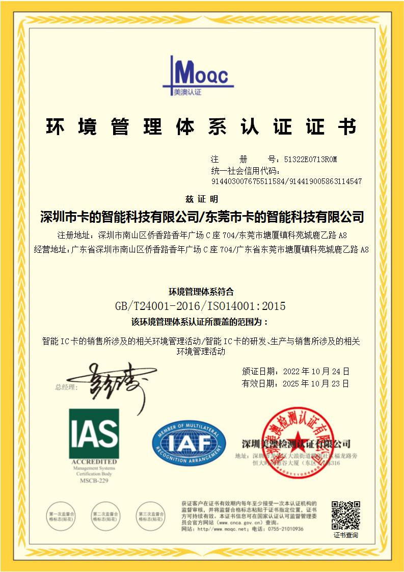 環境管理(lǐ)體(tǐ)系認證證書(shū)