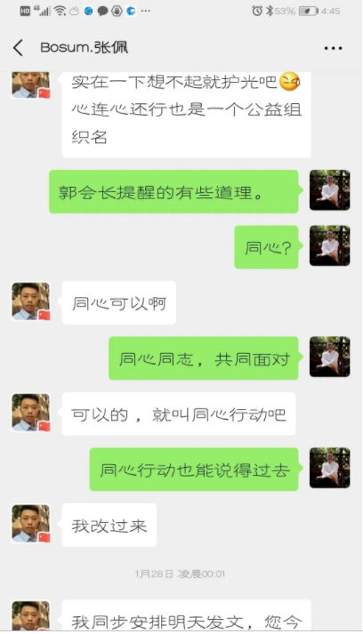 1月(yuè)26日(rì)年(nián)初二在路(lù)上(shàng),下(₹xià)午、晚上(shàng)陸續接到(dào)博商夏長(cháng)安同學與企業(yè)家(jiā)服務隊王偉指導會(huì)長(ch¶áng)的(de)電(diàn)話(huà),也(yě)在提起抗災的(de)事(shì)。1月(yuè)27日(rì)整天至28日(rì)淩晨,與博商會(huì)張佩秘書(shū)長(cháng)、博商公益基金(jīn)薛浩執行(xíng)秘書(shū)長(cháng)溝通(tōng)赈災事(shì)宜,討(tǎo)論參照♦(zhào)郭曉林(lín)會(huì)長(cháng)意見(jiàn)定名為(wèi)博商公益同心行(xíng)動。