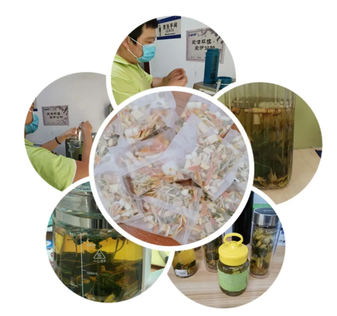 公司自(zì)2月(yuè)10日(rì)複工(gōng)以來(lái),除了(le)做(zuò)好(hǎo)每天消殺工(gōng)作(zuò)和(hé)保障齊備防護用(yòng)品外(wài),也(yě)從(cóng)加強員(yuán)工(gōng)身(shēn)體(tǐ)營養、增強免疫力方面著(zhe)手,每天早餐為(wèi)員(yuán)工(gōng)另加茶葉蛋、每天葷素搭配營養餐、多(duō)種花(huā)樣濃湯、每天一(yī)例防未一(yī)号中藥茶包。