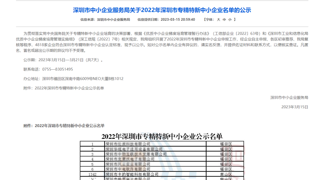 深圳卡的(de)通(tōng)過專精特新認證