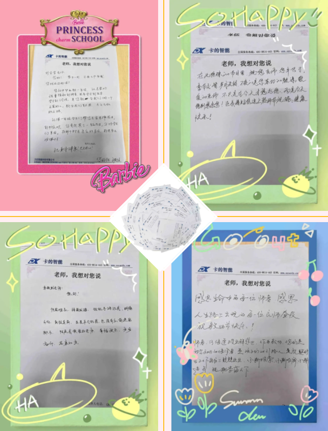 發布時(shí)間(jiān):2023-09-08在教師(shī)節即将來(lái)臨之際,卡的(de)智能(néng)家(jiā)人(rén)們早早準備了(le)信紙(zh ǐ),借著(zhe)這(zhè)個(gè)特别而又(yòu)神聖的(de)日(rì)子(zǐ)表達自(zì)己對(duì)各自(zì)生(shēng)命中α老(lǎo)師(shī)們的(de)感激之情,大(dà)家(jiā)字裡(lǐ)行(xíng)間(jiān)充滿了(le)感恩與祝福:感謝(xiè)老(lǎo)師(shī)教會(huì)我們 識字辯理(lǐ),感謝(xiè)領導傳授了(le)行(xíng)業(yè)知(zhī)識,感謝(xiè)老(lǎo)師(shī)對→(duì)孩子(zǐ)無微(wēi)不(bù)至的(de)關懷。。。。。