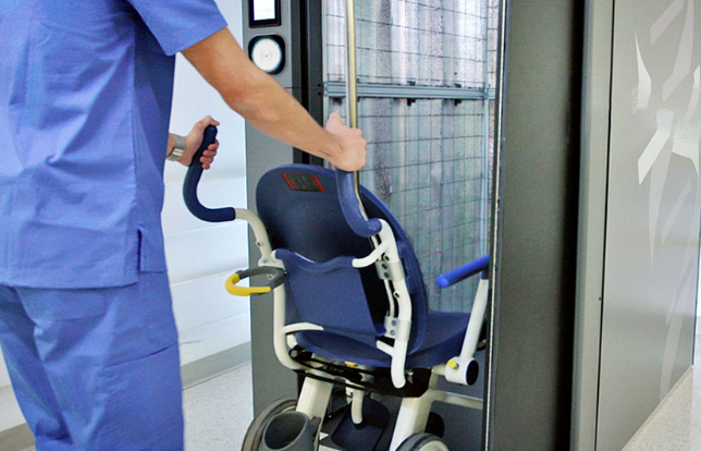 使用(yòng)前,醫(yī)療工(gōng)作(zuò)者首先将諸如(rú)輪椅之類的(de)物(wù)品帶到(dào)UVE進行(xíng)消毒。他(tā)們先将與他(tā)們的(de)身(₩shēn)份相(xiàng)關聯的(de)HF RFID徽章(zhāng),輕靠閱讀(dú)器(qì)附近(jìn)。如(rú)果他(tā)們被授權使用(yòng)該 設備,設備将開(kāi)鎖并允許放(fàng)輪椅進去(qù)。