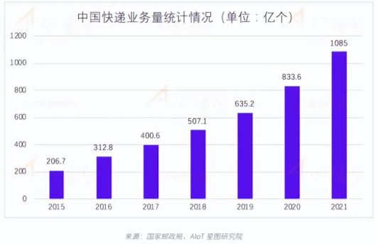 根據國(guó)家(jiā)郵政局的(de)數(shù)據,中國(guó)的(de)快(kuài)遞包裹行(xíng)業(yè)一(yī)直保持著(zhe)較高(gāo)的(de)發展速度,并且于2021年(nián)底,成功突破了(le)年(nián)1000億個(gè)大(dà)關₩。