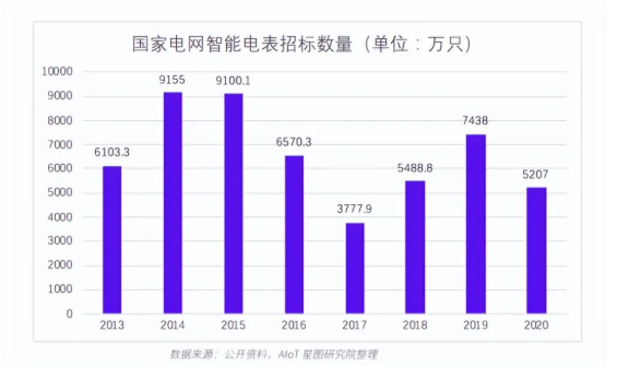 由上(shàng)圖可(kě)以發現(xiàn),國(guó)家(jiā)電(diàn)表的(de)招标數(shù)量呈周期性變化(huàε),在2017年(nián),處于谷底,僅3000多(duō)萬隻,一(yī)般電(diàn)表的(de)更→換周期是(shì)8年(nián),所以最近(jìn)這(zhè)幾年(nián)處于上(shàng)升期,每年(nián)正常有(yǒu)7000-8000萬隻新增量,不✔(bù)過2020年(nián),因為(wèi)疫情的(de)原因,導緻市(shì)場(chǎng)縮水(shuǐ)嚴重。