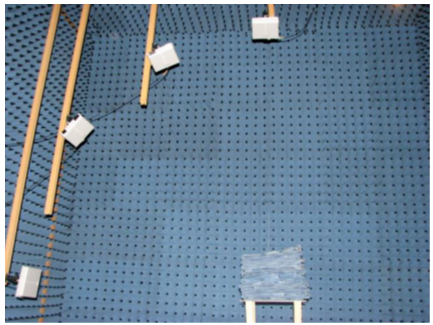 為(wèi)了(le)保證測試穩定性,測試環境為(wèi)微(wēi)波暗(àn)室,如(rú)圖6-37所示為(wèi)ARC認證實驗室中測試環境照(zhào)片,其中∏要(yào)求每個(gè)天線與被測标簽的(de)距離(lí)應在0.5米到(dào)2米之間(jiān),圖中的(de)天線與被測标簽的(de)¥距離(lí)為(wèi)1.5m。