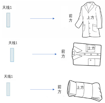 TIPP的(de)測試環境與ARC的(de)完全相(xiàng)同,因此不(bù)需要(yào)做(zuò)任何調整。測試時(shí)需要(yào)注意的(de)是(∞shì)貼标物(wù)體(tǐ)的(de)方向需要(yào)保持一(yī)緻,如(rú)不(bù)同會(huì)引起系統誤差,因此TIP>P規定了(le)貼标位置和(hé)方向。如(rú)圖6-41所示為(wèi)貼标物(wù)體(tǐ)為(wèi)大(dà)衣、襯衣和(hé)襪子(zǐ)且對(duì)天線1時( shí),其上(shàng)方(Top)和(hé)前方(Front)的(de)定義。