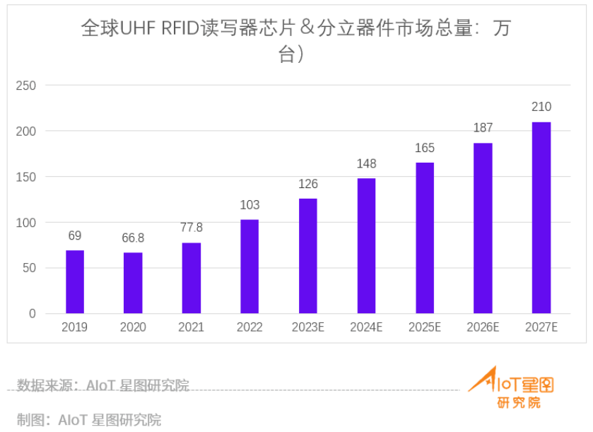 除了(le)标簽之外(wài),UHF RFID讀(dú)寫器(qì)市(shì)場(chǎng)也(yě)在保持著(zhe)高(gāo✔)速的(de)發展趨勢,根據AIoT星圖研究院的(de)最新調研數(shù)據,2022年(nián),全球各類UHF RFID讀(dú)寫器(qì)出貨量超過了(le)100萬台。