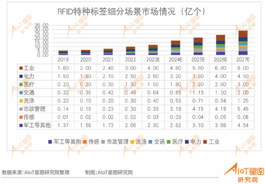 在AIOT星圖研究院《RFID無源物(wù)聯網生(shēng)态報(bào)告之特種标簽市(shì)場(chǎng★)分(fēn)析報(bào)告》中,對(duì)RFID特種标簽細分(fēn)場(chǎng)景市(shì)場(chǎng)情況有(yǒu)詳盡的(de)分(fēn)析,數(s✔hù)據體(tǐ)現(xiàn)為(wèi):