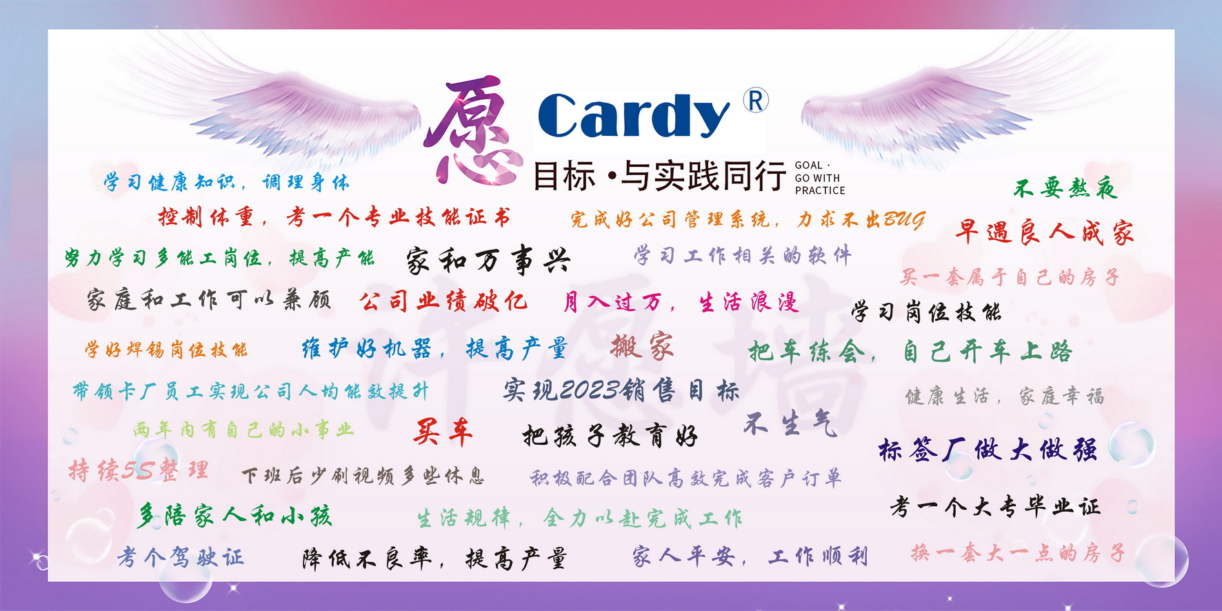 發布時(shí)間(jiān):2023-02-10一(yī)年(nián)之計(jì)在于春,在立春後的(de)第一(yī)節大(dà)早課上(shàng),卡✘的(de)家(jiā)人(rén)們現(xiàn)場(chǎng)用(yòng)文(wén)字記錄了(le)2023年(nián)的(de)奮鬥目标。俗話(huà)說✔(shuō):“沒有(yǒu)目标的(de)人(rén)生(shēng)叫流浪,有(yǒu)目标的(de)人(rén)生(s©hēng)叫航行(xíng)。”目标就(jiù)像烈火(huǒ),它會(huì)點燃我們奮鬥的(de)激情,目标也(yě)像明(míng)燈,₽它會(huì)照(zhào)亮(liàng)我們前進的(de)方向。風(fēng)勁好(hǎo)揚帆,奮進正當時(shí)。明(míng)确的(de)目标蘊藏無限能(néng)量,它會(huì)滋養我們成長(cháng)。