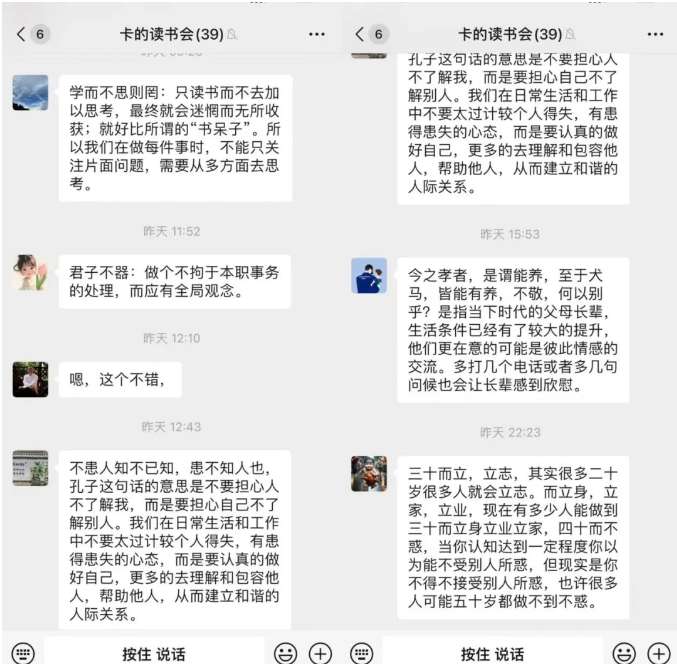 發布時(shí)間(jiān):2024-07-16卡的(de)智能(néng)第84期讀(dú)書(shū)會(huì)于7月(yuè)12日(rì)在聖學書(shū)院如(rú)期舉行(xíng)。公司同事(shì)十餘人(rén)參加,顔老(lǎo)師(shī)以《論語》精選“有(yǒu)道(dào)而正焉”為(wèi)引拉開(↓kāi)本期讀(dú)書(shū)會(huì)的(de)序幕,講解了(le):讀(dú)聖賢書(shū)要(yào)将自(zì)身(shēn)拉回古人(rén)₩所處的(de)年(nián)代,正确理(lǐ)解和(hé)傳承經典古籍的(de)精神和(hé)理(lǐ)念。