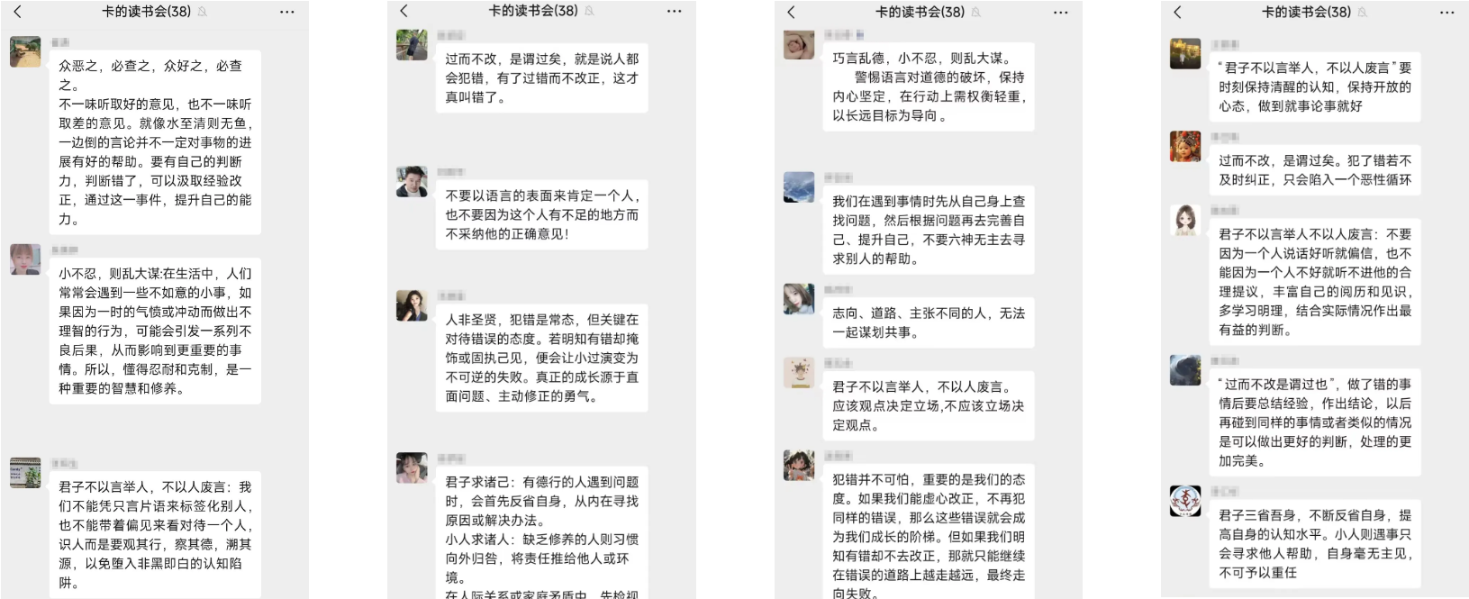 古人(rén)用(yòng)竹簡傳遞思想,我們用(yòng)微(wēi)信記錄所學。同事(shì)們暢談經典照(zhào)進現(x✘iàn)實工(gōng)作(zuò)的(de)實踐, 一(yī)條條真誠的(de)分(fēn)享,讓傳統文(wén)化(huà)成為(wèi)照(zhào)進我們的φ(de)光(guāng)。